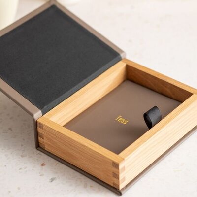 You have the option to add up to three lines of text to the cover of your album with debossing (image 2).