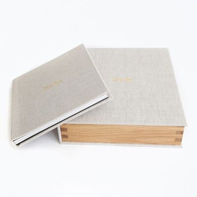 All custom-designed press printed albums include a hardcover-style backing, lay-flat design, and are wrapped in a material of your choosing. All basic linen options are included in your album's base price but can be upgraded to leather (+ $100).